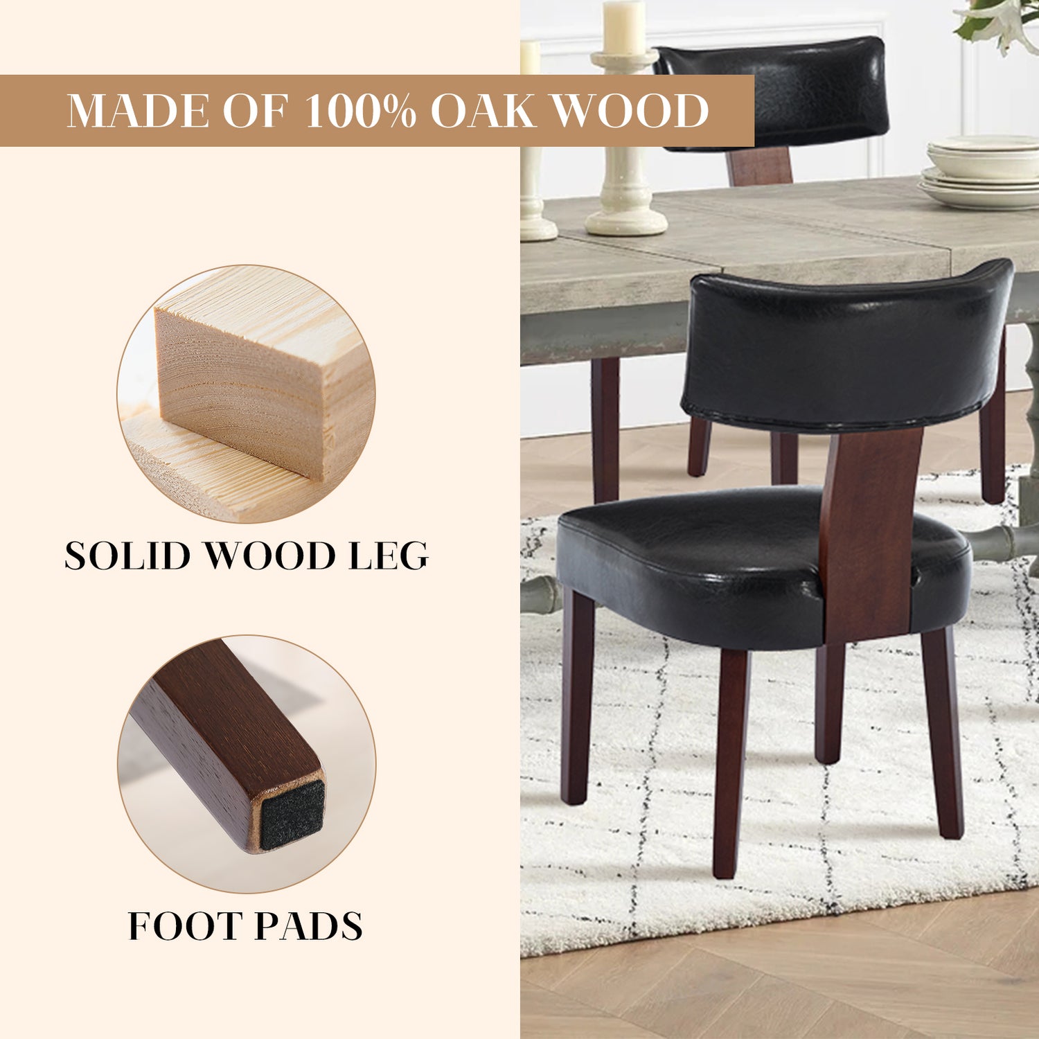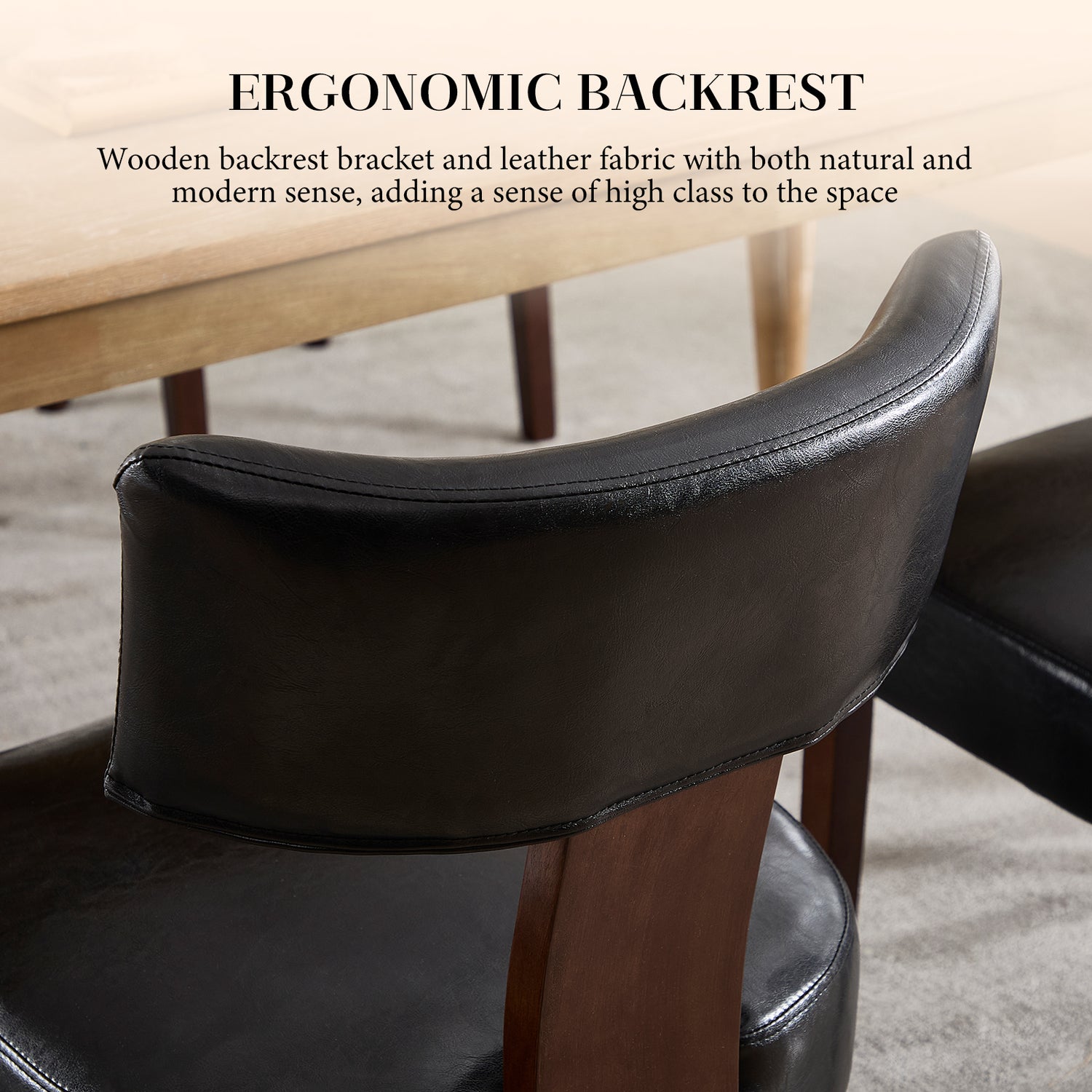 Timeless Elegance with Modern Comfort: Enhance your space with these vintage dining chairs, designed with a sleek silhouette and premium faux leather upholstery. The gracefully curved backrest and solid wood legs add a sophisticated touch, blending contemporary charm with classic appeal.